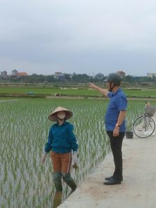 Đồng chí Lê Minh Tuấn – Phó Bí thư Đảng ủy, Chủ tịch UBND xã thăm đồng, chỉ đạo sản xuất lúa vụ xuân.