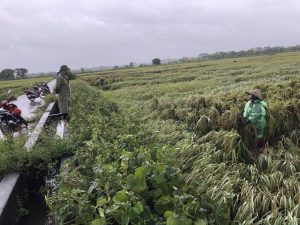 Đồng chí Lê Minh Tuấn – Phó Bí thư Đảng uỷ, Chủ tịch UBND xã kiểm tra diện tích lúa mùa do ảnh hưởng cơn bão số 10 (bão Bualoi).