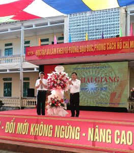 Đồng chí Lê Minh Tuấn – Phó Bí thư Đảng uỷ, Chủ tịch UBND xã dự Lễ khai giảng tại Trường Tiểu học&THCS Lưu Khánh Đàm.